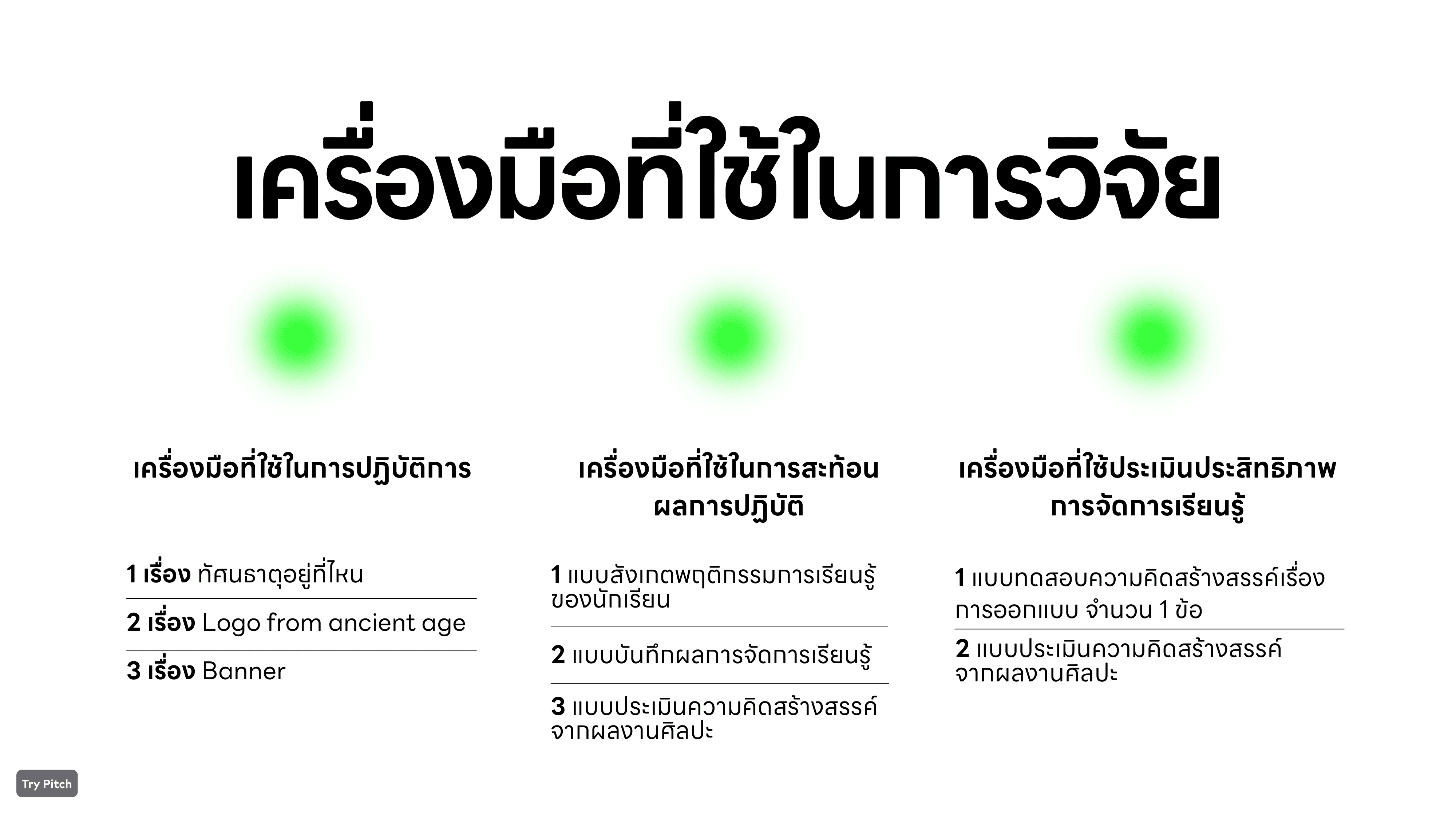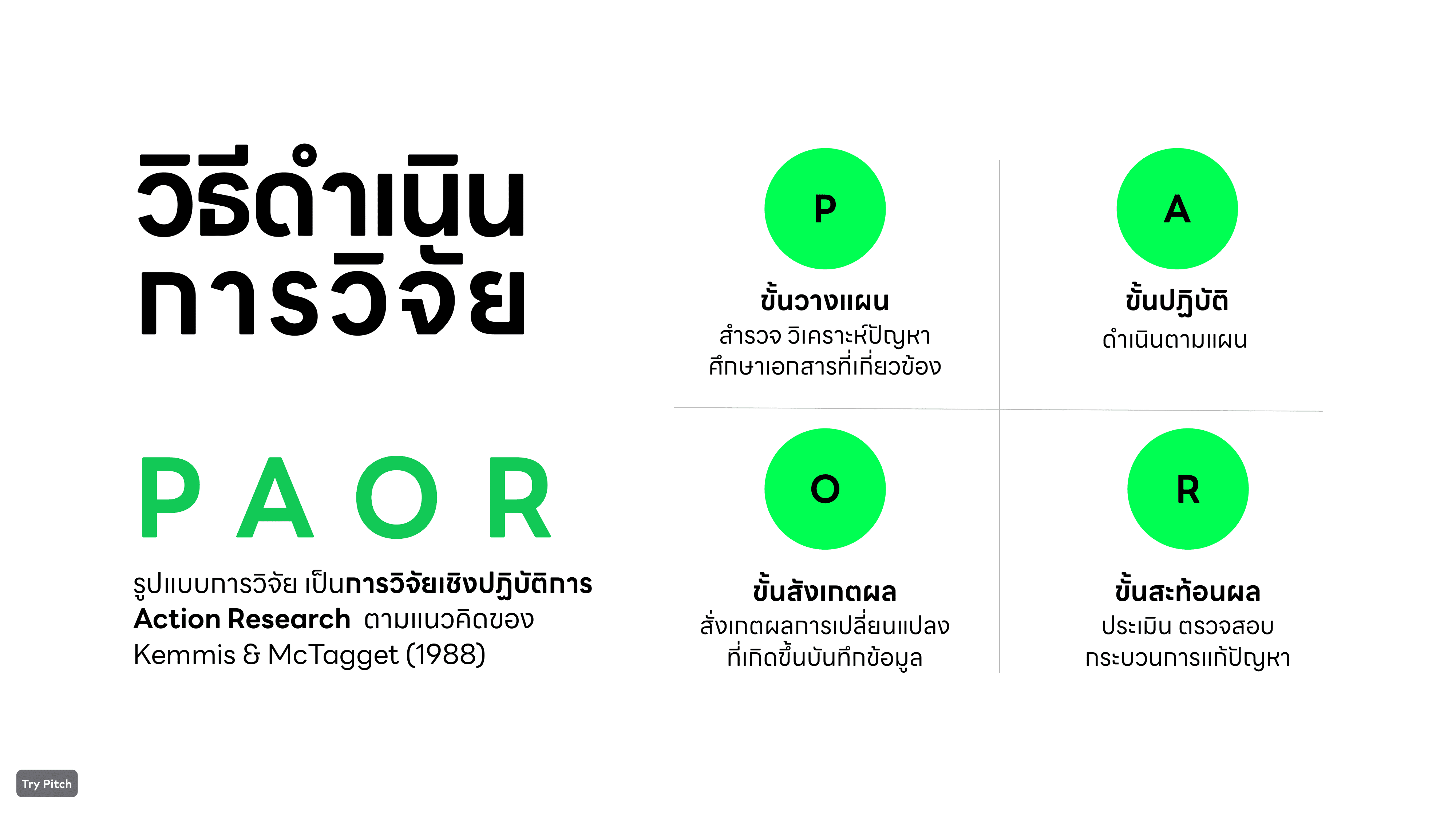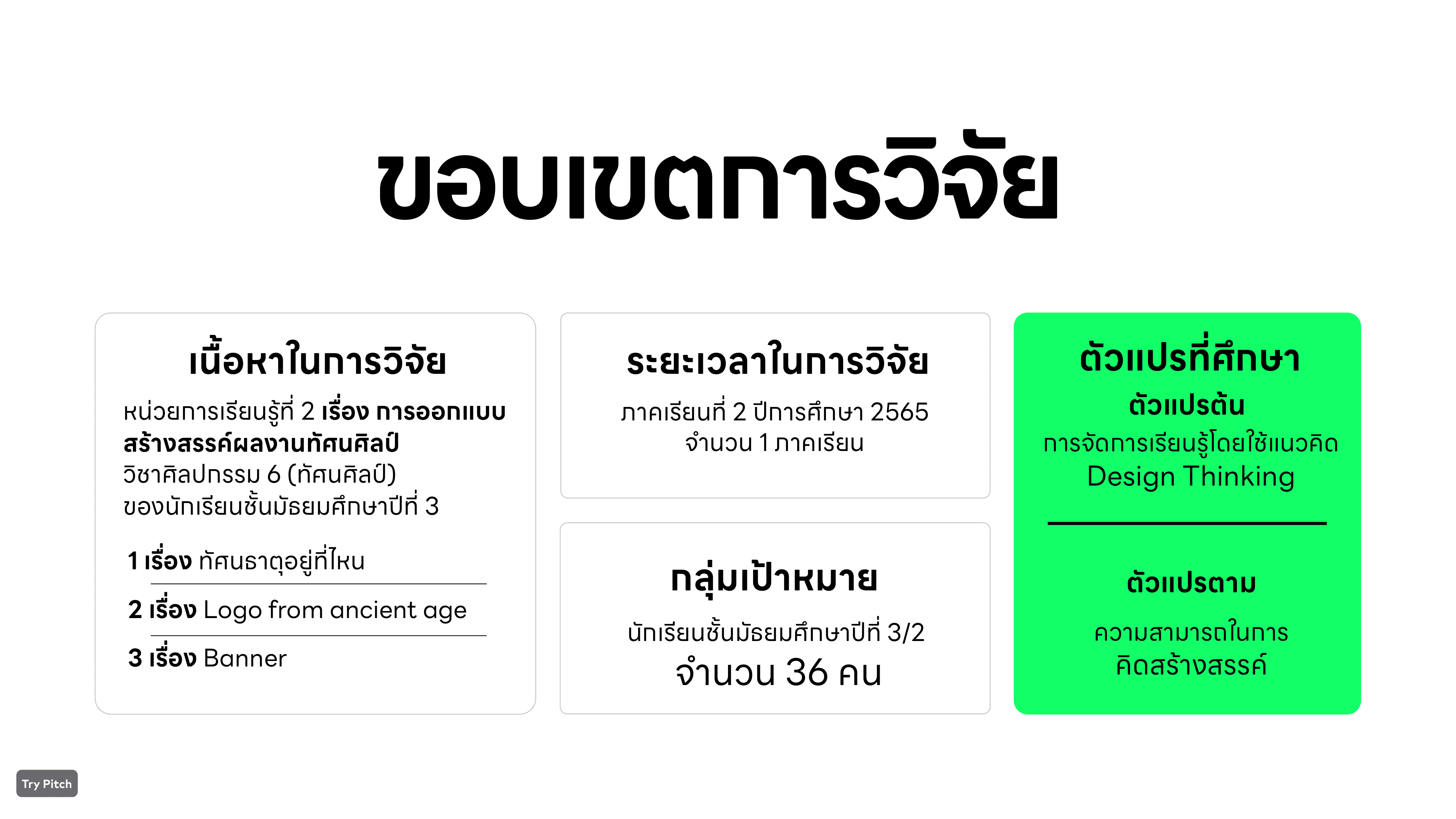 Presentation นำเสนอสีเขียวที่เป็นสีหลักของผม พยายามจัดเรียงและลำดับเนื้อหาการวิจัย ให้สามารถเข้าใจง่ายที่สุด