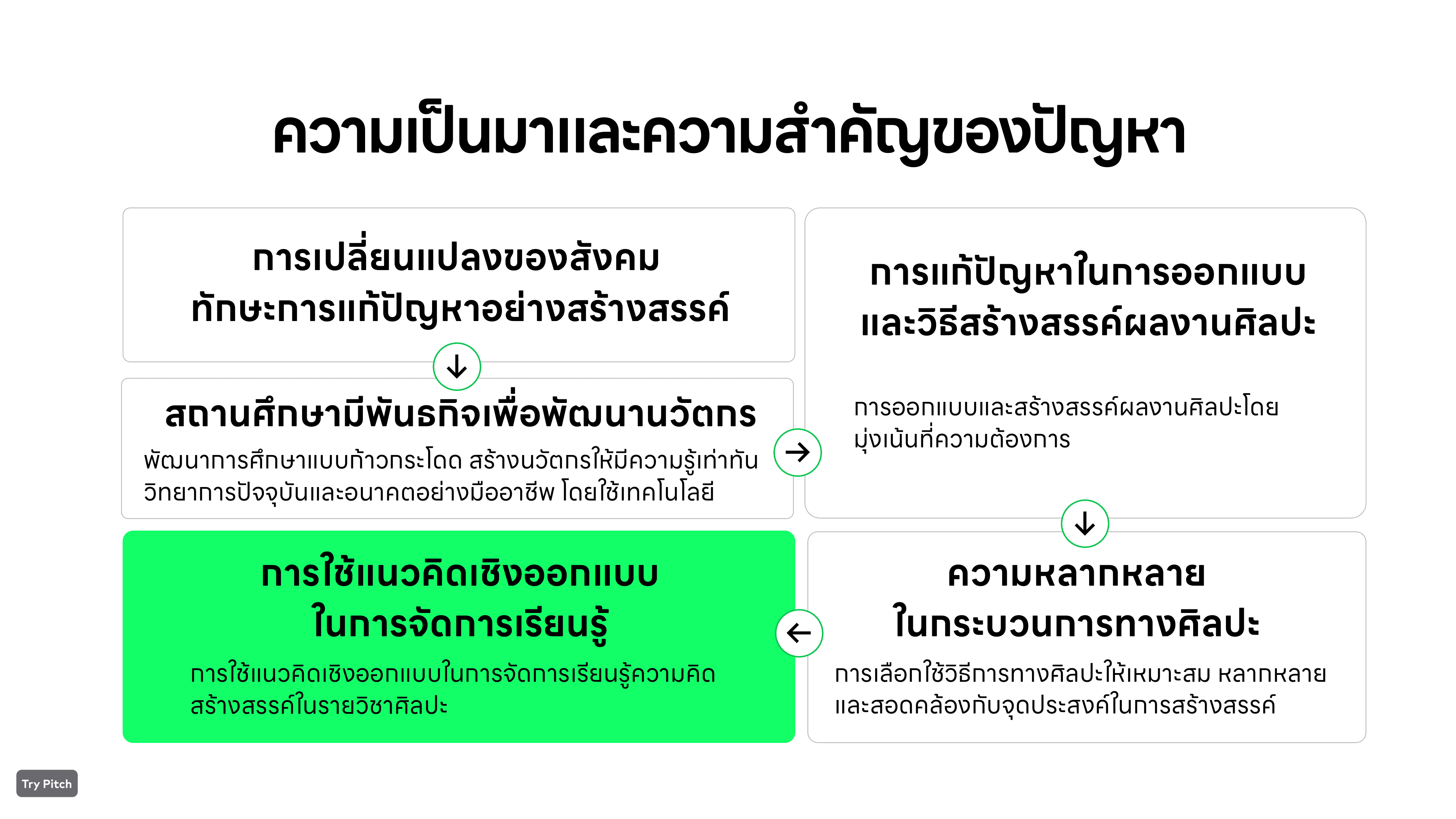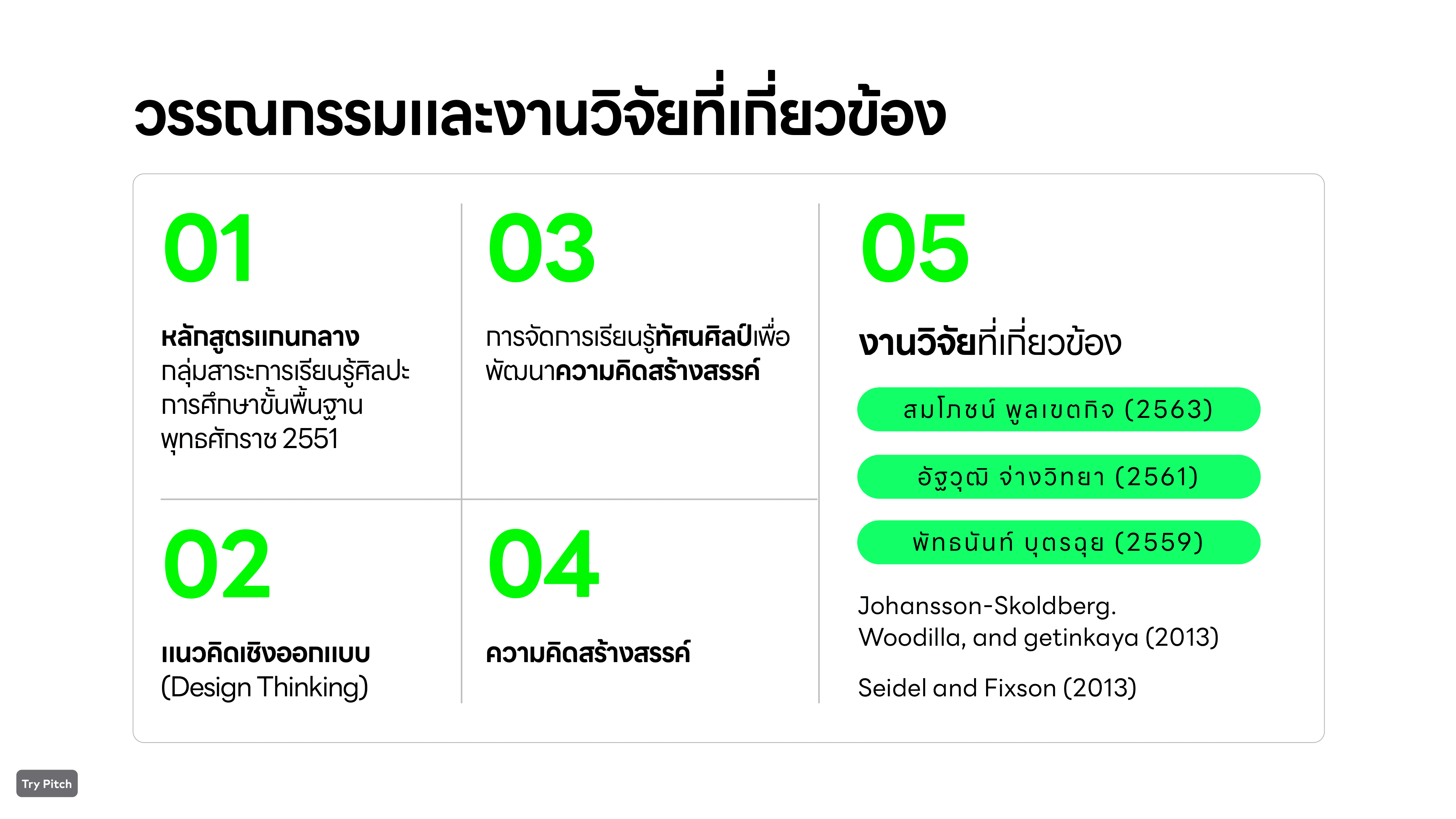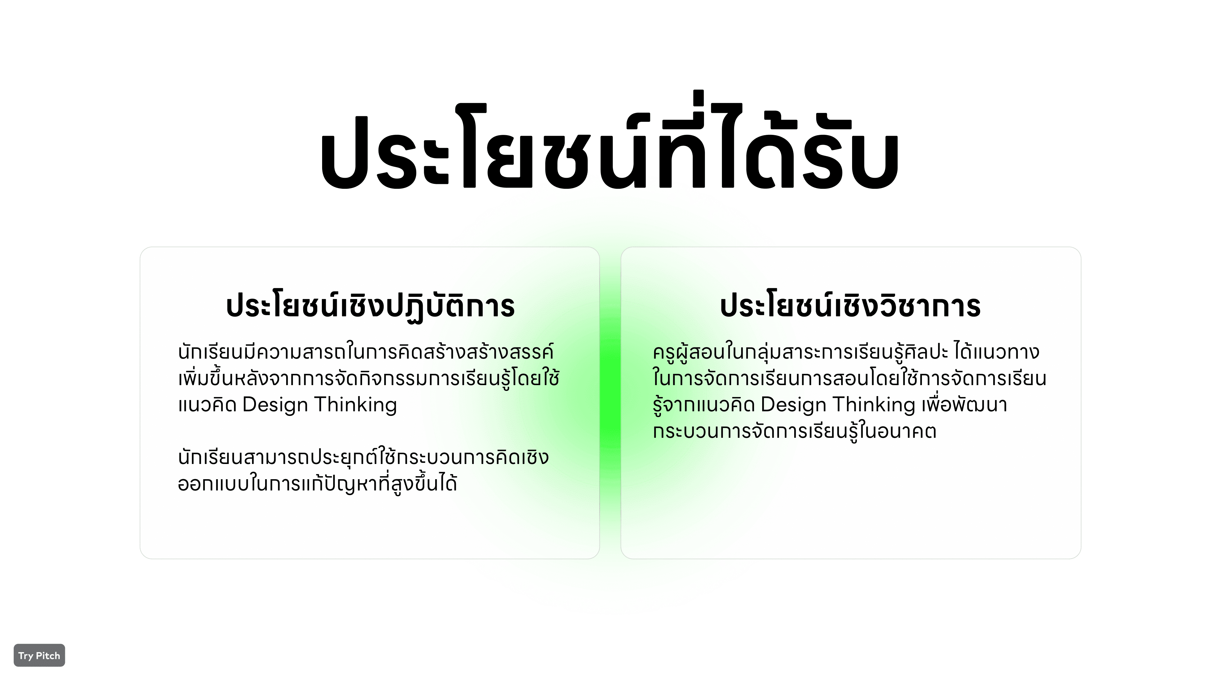 Presentation นำเสนอสีเขียวที่เป็นสีหลักของผม พยายามจัดเรียงและลำดับเนื้อหาการวิจัย ให้สามารถเข้าใจง่ายที่สุด