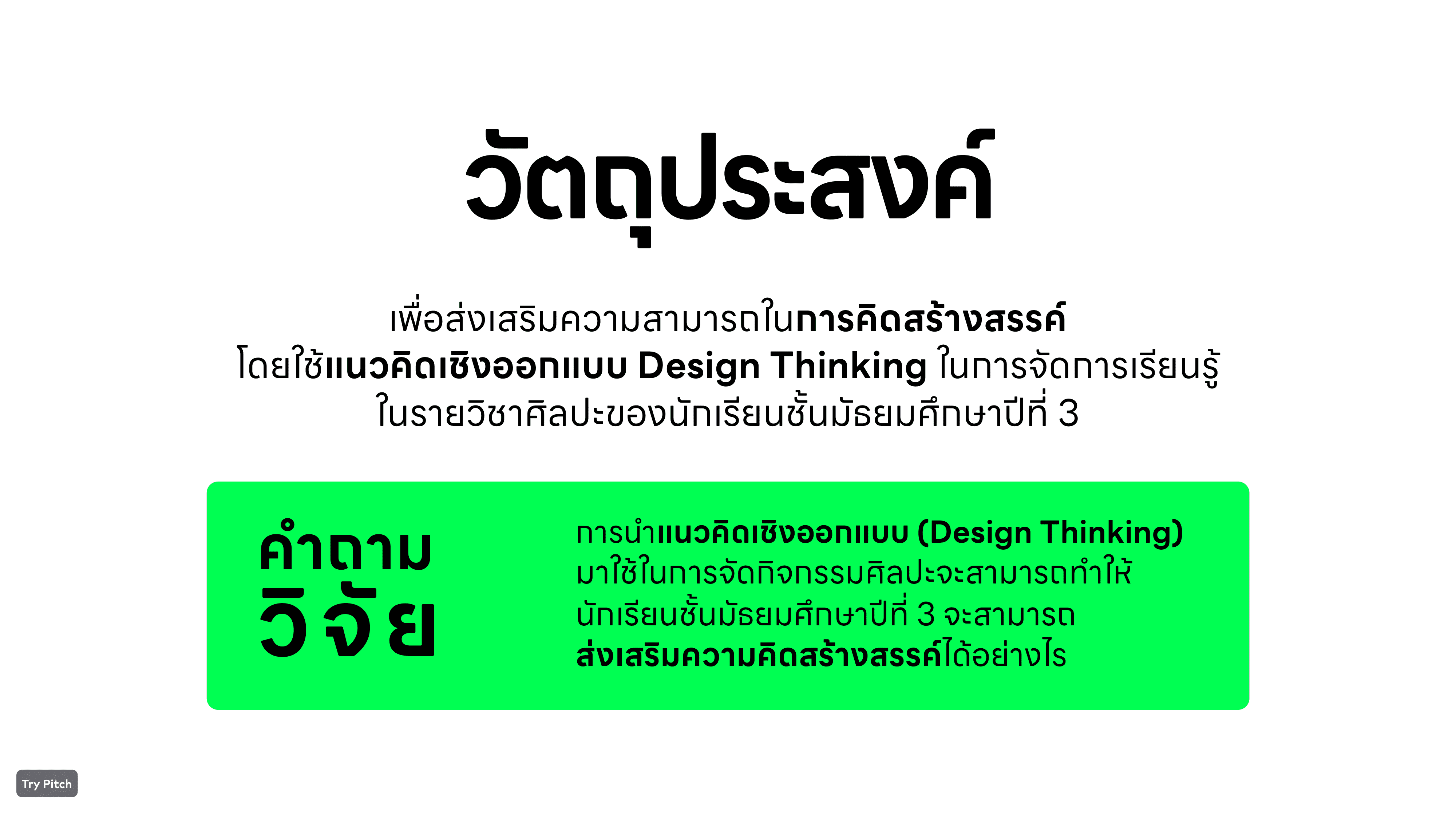 การวิจัยในชั้นเรียน Design Thimking ที่นำมาปรับใช้เพื่อพัฒนากระบวนการจัดการเรียนรู้ ในรายวิชาศิลปะ ที่ผมได้ศึกษาและนำมาปรับใช้ในกระบวนการออกแบบ ที่นำเสนอการออกแบบที่เน้น ให้เรารู้จักเป้าหมายให้ดีก่อนแก้ปัญหาและออกแบบให้ตรงกับความต้องการ