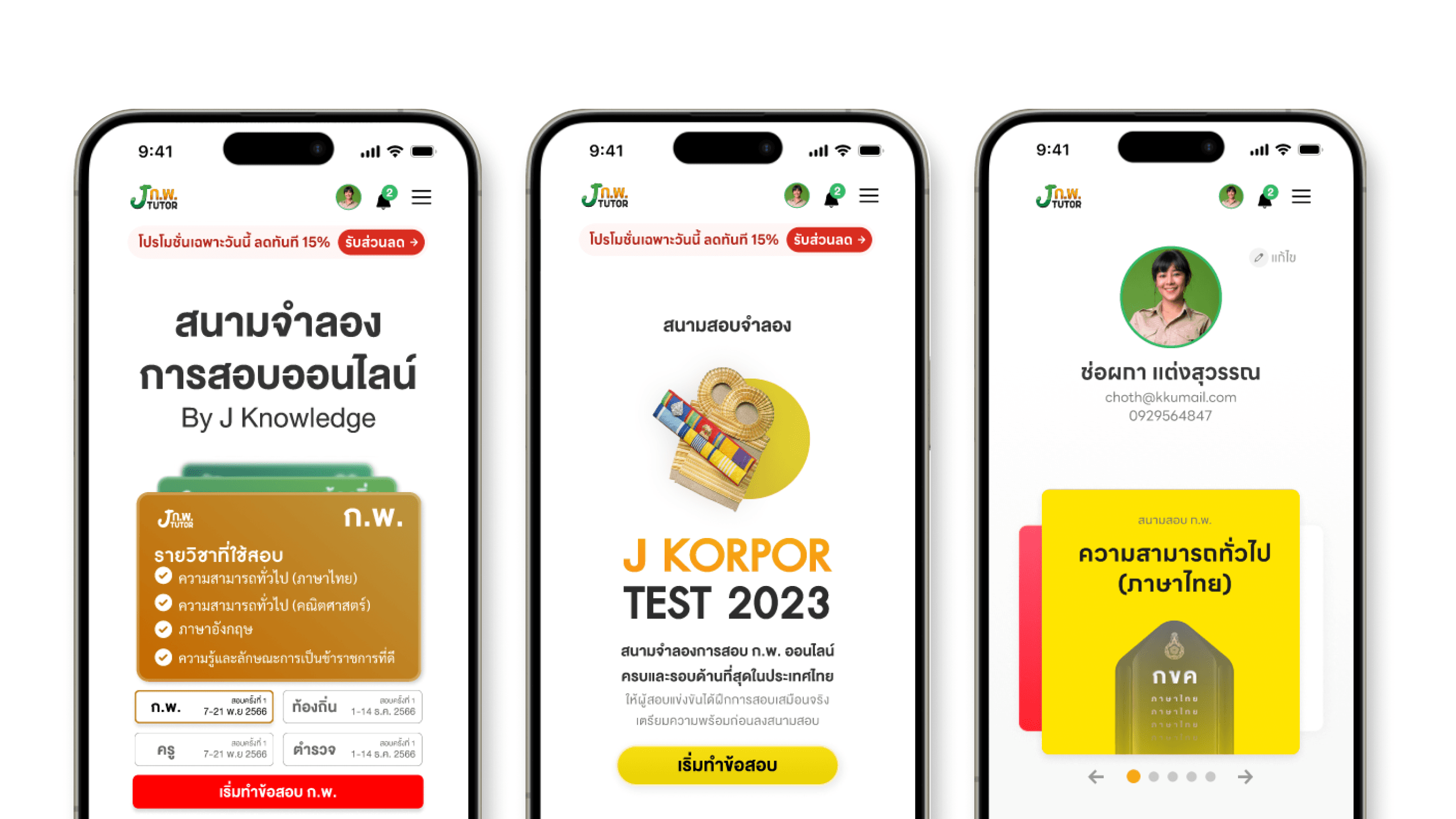 การออกแบบเว็บไซต์การจำลองการสอบ J Korpor ออกแบบเว็บไซต์สำหรับการจำลองการสอบ ก.พ. ท้องถิ่น ครู และอื่นๆ ซึ่งเป็นการออกแบบที่จำเป็นต้องสร้างต้นแบบ Prototype ของเว็บไซต์ ซึ่งในการออกแบบจำเป็นต้องออกแบบใหม่ทั้งหมด รวมถึง Asset ที่อยู่ในเว็บไซต์ ภาพประกอบและกราฟิก รวมถึงเอนิเมชันภายในเว็บไซต์ โดยเครื่องมือหลักที่ใช้คือโปรแกรม Figma