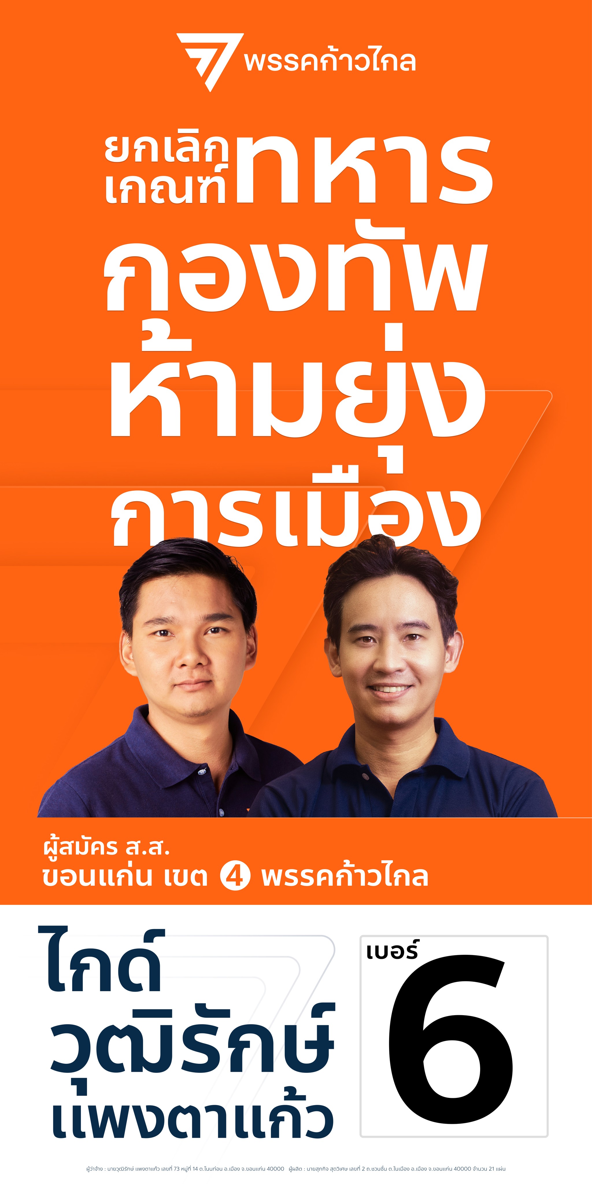 โปสเตอร์หาเสียงเลือกตั้งสภาผู้แทนราษฎร พรรคก้าวไกล ขอนแก่นเขต 4