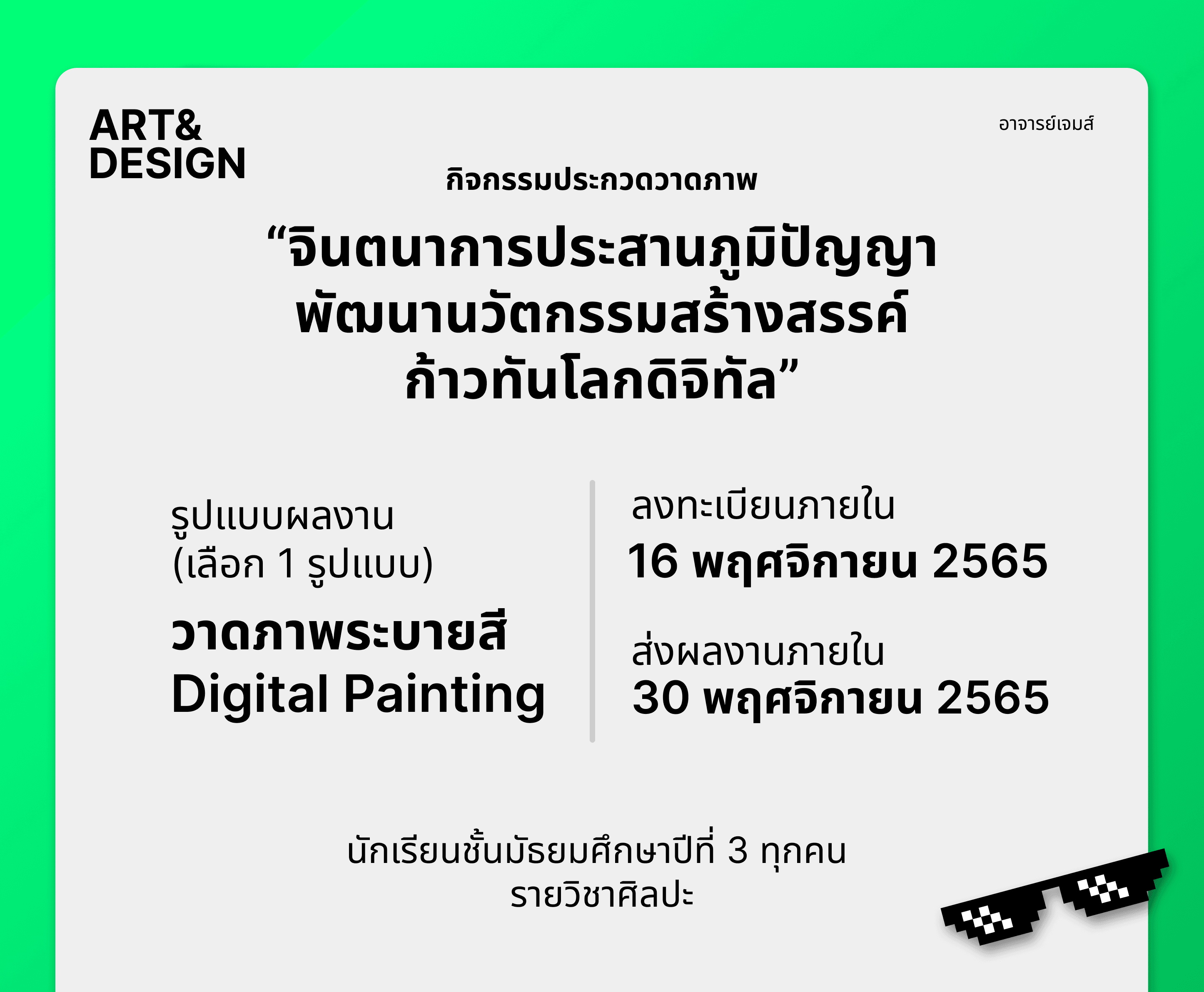 Poster ที่ออกแบบเพื่อใช้งานในชั้นเรียน เพื่อประชาสัมพันธ์ ทำกิจกรรมที่เกิดขึนในชั้นเรียน