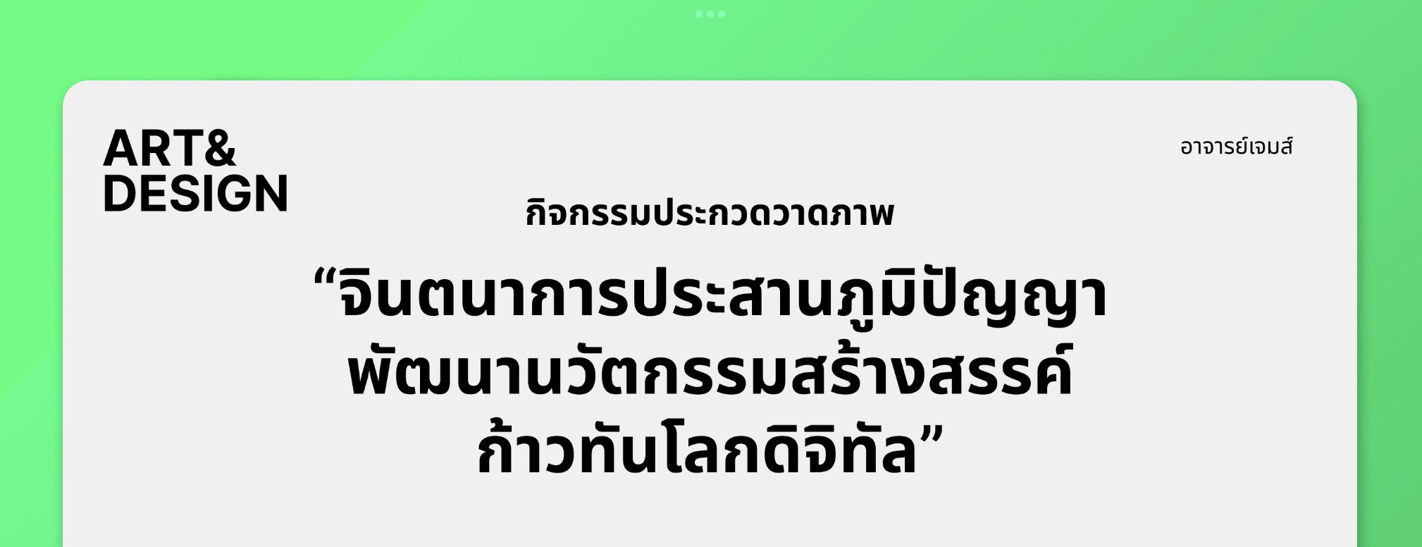 การออกแบบหลักๆจะใช้สีเขียว ซึ่งเป็นสีประจำตัวที่ผมประทับใจ เพื่อเป็นเอกลักษณ์เฉพาะเพื่อให้นักเรียนจดจำได้ง่ายระหว่างเรียน โดยเครื่องมือหลักที่ใช้ในการออกแบบจะเป็น Figma